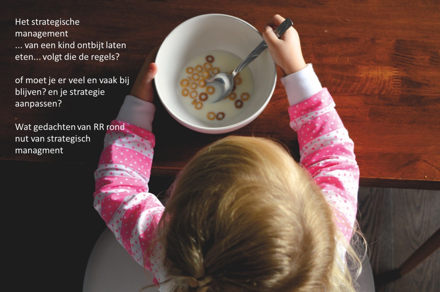 In dat verband kan je zeggen dat zelfs falen, zelfs is dat snel en goedkoop, omdat je maar wat doet, ‘Gooi het tegen de muur en zie maar wat blijft hangen’ wordt te traag en duur. Zoals Rita Gunther McGrath schrijft: ‘Voorspellen en goed zijn’ is minder belangrijk dan snel reageren en corrigerende maatregelen nemen. We moeten de fantasieën van valse zekerheid wegleggen en leren hoe we in de loop van de tijd minder fout kunnen worden. Dat pleit voor een meer ‘Bayesiaans proces’ waarbij er geen zekerheden zijn – alleen maar waarschijnlijkheden – die evolueren en in realtime veranderen. Hierbij wordt de hypothese die je stelt steeds aangepast aan de feiten die je verzamelt. Ik denk dat de ‘hot air’ van strategie maken een soort cultus werd, waar de sigaren goed smaakte, maar het niet ging over strategie, maar controle en controle is altijd een illusie geweest. Zoveel begin ik ook te leren van het proberen mijn pleegkinderen in een stramien te krijgen… zelfs het proces van ontbijt zit er na zes jaar nog niet in….