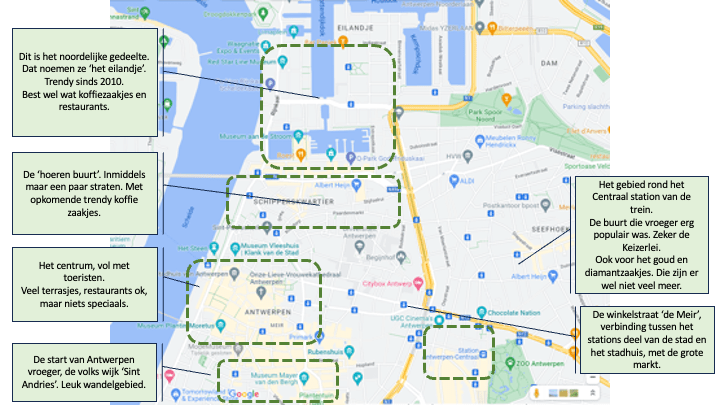 De plaatjes hieronder geven een algemeen beeld van hoe ik de wijken in Antwerpen zie. Er zitten niet alle wijken in.