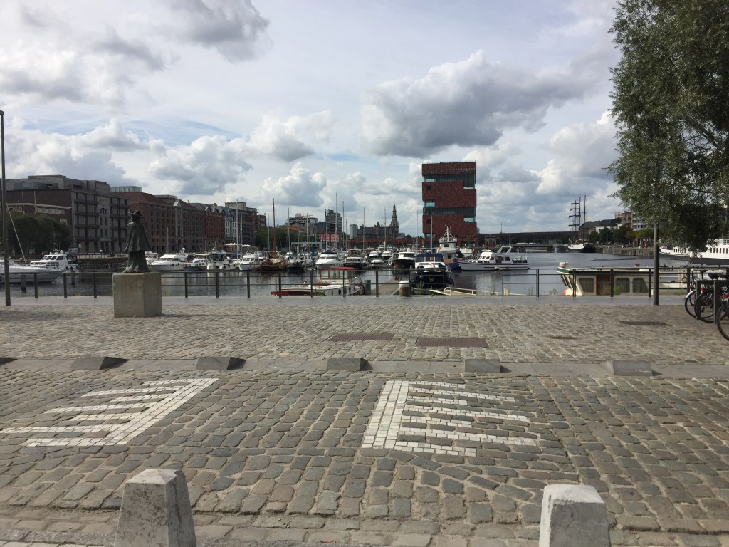 Het grote bruine gebouw is het Museum aan de Stroom. (MAS) in een mooi jachthaven gebied waar ik ooit mijn telecom firma gestart ben.