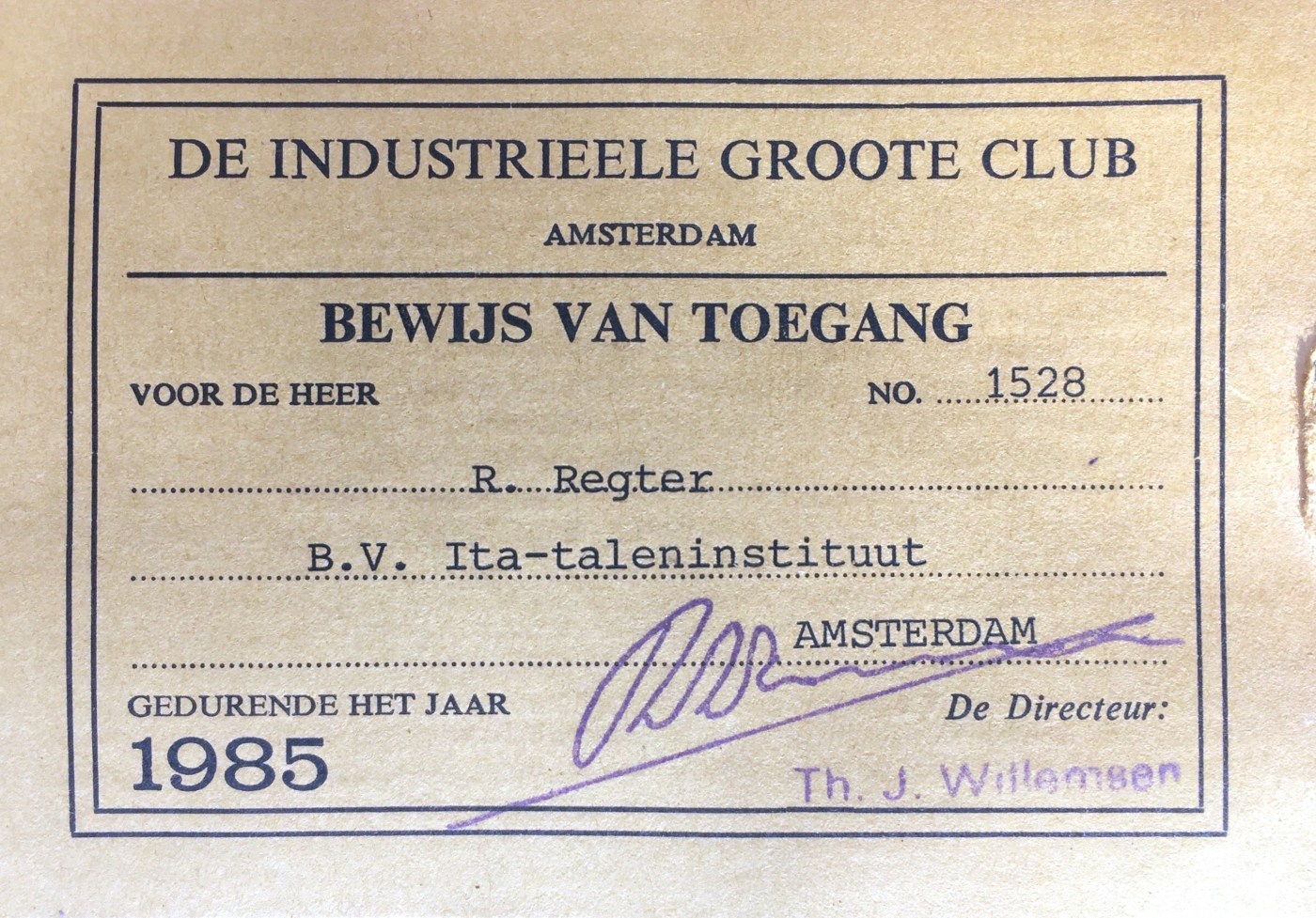 Het werd toen drukker, mensen zonder stropdas kwamen meer. Een eerste neergang zou ik denken voor het gehalte. Grappig genoeg schrijf ene directeur van de IGC daarover dat ze mensen dan naar de Bijenkorf, de warenhuis winkel, tegenover de ICG verwezen om een stropdas te kopen. En dan kon, want dat warenhuis open tot tien uur in de avond. Geen geleende stropdassen meer die in mijn tijd een vorm van service waren. Dus veel lidgeld betalen, maar wel je eigen stropdas moeten halen en een halfuur van je tijd kwijt zijn. Zullen arme mensen zijn geweest die lid werden.