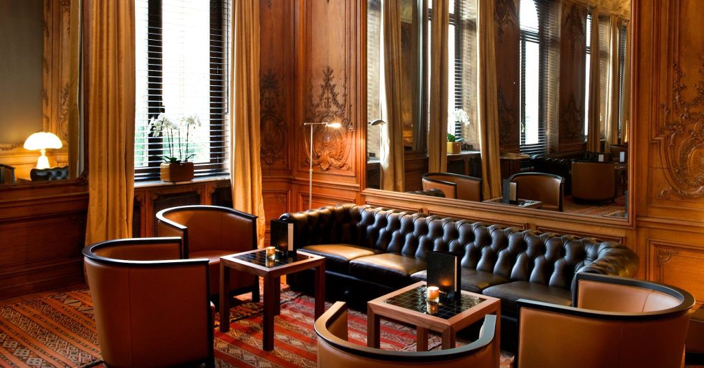 Een brede trap op, met tapijt aan een roede vastgemaakt, de trap rond in een cirkel en dan de eerste verdieping. Telefoonhokje links, -mobile telefoons bestonden nog lang niet- de grote zaal voor je. Twee brede deuren en je stapte binnen in de wereld waar beslissingen voor het land werden gemaakt, waar overlegd werd over grote industriëlen werken, waar zakelijk disputen werden beslecht aan de tafel discreet apart gezet.
