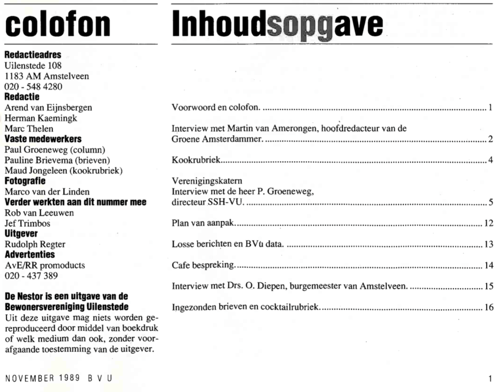 Een start maakte het blad eigenlijk door wat schrijfwerk dat we deden als we aan het telefoneren waren. Dat ging toen nog uitsluitend met een vaste lijn, mobiel bellen bestond nog niet.